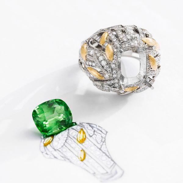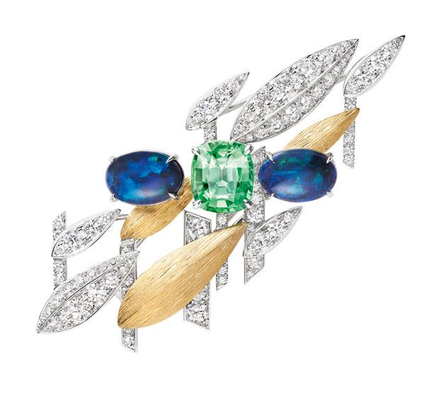 Una técnica que la Maison domina magistralmente es la articulación, que confiere a las piezas una flexibilidad sorprendente, al igual que la combinación de engastes de cuentas brillantes y recortados, da testimonio de la preeminencia de los artesano del número 12 de Vendôme.