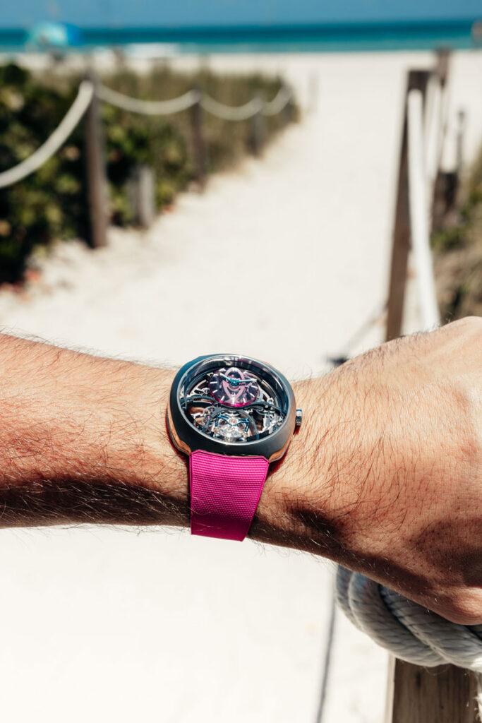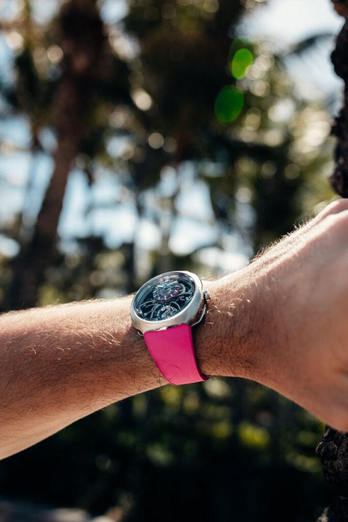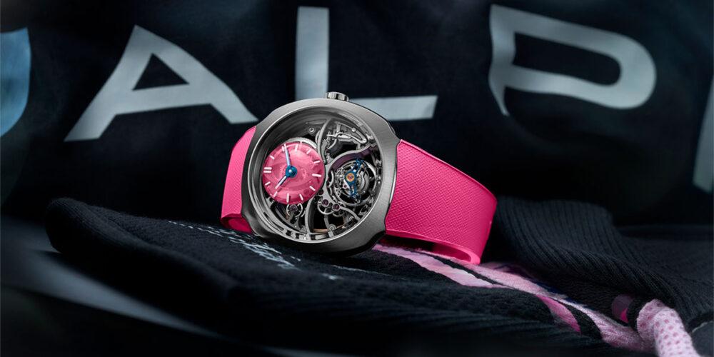 Tras el lanzamiento del modelo Streamliner Cylindrical Tourbillon Skeleton Alpine Limited Edition hace un par de semanas, H. Moser & Cie. presenta una segunda versión en rosa coincidiendo con el Gran Premio de Miami de 2024. Para contrastar con el color azul dominante del primer modelo, este nuevo reloj Streamliner. Se presenta en color rosa en homenaje a la tradicional segunda librea del monoplaza pilotado por el equipo de Fórmula 1 BWT Alpine, socio de H. Moser & Cie. Se trata de una edición muy limitada de tan solo 20 ejemplares, que estará disponible exclusivamente online en el sitio web de H. Moser & Cie.