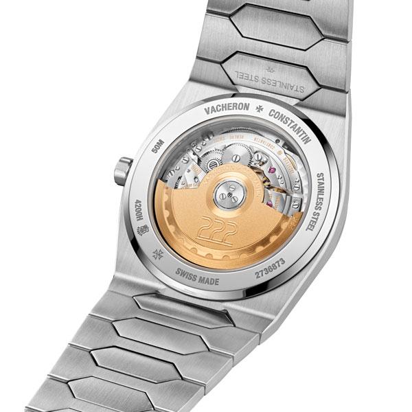 La edición que se presenta ahora del primer modelo 222, apodado «Jumbo» por los coleccionistas se beneficia de varias mejoras técnicas. Las articulaciones del brazalete -que ahora se abrocha con un cierre de triple pala en lugar de doble- se han rediseñado para ocultar los pasadores anteriormente visibles y mejorar la ergonomía. El fondo de la caja, que lleva una firma que representa el 270 aniversario de Vacheron Constantin, está provisto de un cristal de zafiro transparente que deja ver el Calibre 2455/2 de manufactura. Es decir , se le ve el corazón.