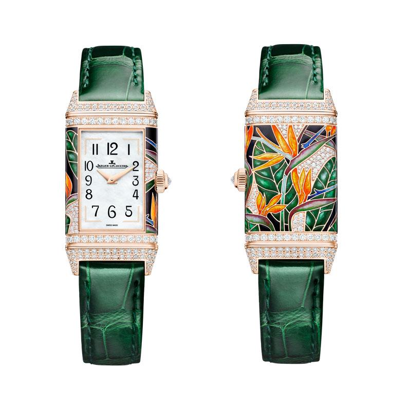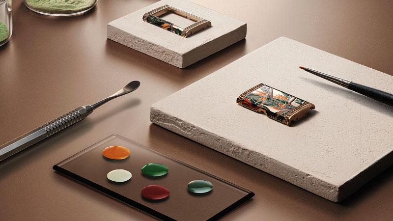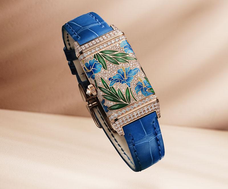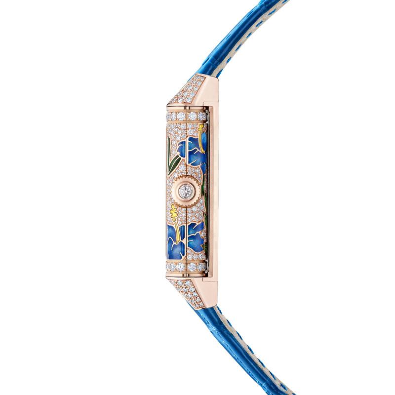Este año, la Grande Maison enriquece la colección con tres nuevos modelos de oro rosa que aportan frescura a la colección. Estos exquisitos relojes, disponibles en una edición limitada de 10 piezas cada una, unen los oficios artísticos del esmaltado, el paillonnage ( embellecimiento del esmalte con motivos decorativos diminutos) en pan de oro y el engaste.