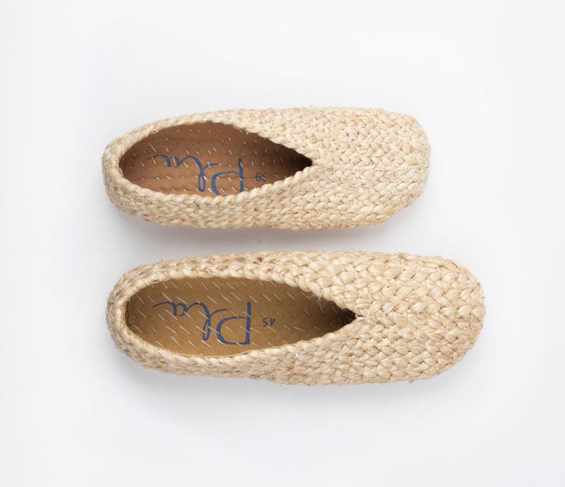 Sus zapatos se fabrican con yute, en concreto cada zapato se hace con una trenza de este material que da vueltas sobre un forro de algodón a la que luego se les añade una suela formada por dos capas, una textil y otra de crepé natural. La combinación de yute y suela hacen que la pisada sea muy confortable.