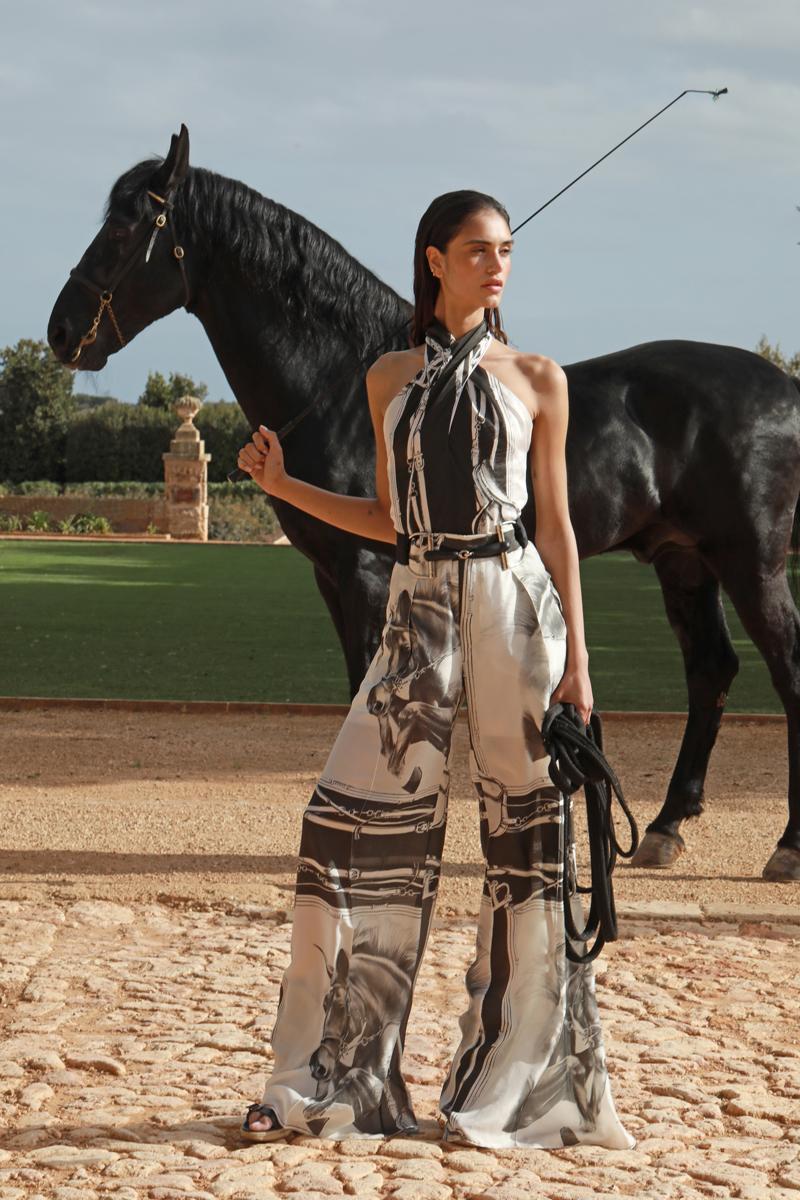 Son Vell Primavera-Verano 2024: Una selección de piezas se inspira en los colores de la naturaleza de Son Vell: tonos arena, terracota, piedra o el verde de la naturaleza. También los olivos que pueblan la finca, los estampados de caballos y los detalles hípicos que son una seña de identidad del hotel gracias a sus servicios personalizados entre los que se encuentran los paseos a caballo.